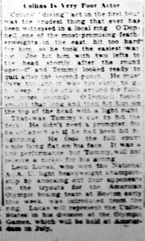Blair Lew Skymer - Battling Mack - Joe Spearing- Frankie Rapp - Johnny Lucas - Joey Straiges - Joey Allen Sgt. Ray Smith - Tommy Ricco - Al Daley - Jackie Hindle - Eddie Chaney Caesar Campana - Young O'Connors - Charlie Mack - Pee Wee Ross - Bobby Zimmerman Buck Flemming - Joe Shannon -Kayo Palmer - Pat Lawrence- Dave Lambert Young Lawrence - Archie McNew - Lou Jackson - Al White - Young Palmer - Tommy Dundee Joe Mangold - Joey O'Donnell - Young Joe Firpo |