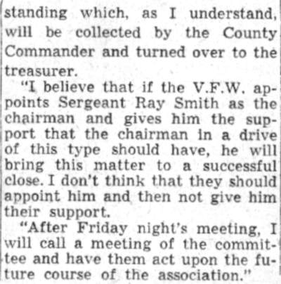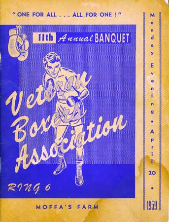 . . . Judges, host of friends present and elsewhere. There is no question, Sgt. Ray Smith welcomes his many friends, and appreciates your coming to honor him. We all agree that Sgt. Ray's heart is not big enough, and words could not express his gratitude to his many friends for paying him this tribute, "Gong" ! ! ! There goes the bell again, and final decision. Ladies, Gentlemen, Honored Guests and Advertisers, the Veteran Boxers Association, Ring No. 6 remains exceed-ingly grateful and sincerely appreciates your support and patronage in honoring "OUR MAN OF THE YEAR". Thank You . . . Good Night . . . Best of Health! Arrangement Committee