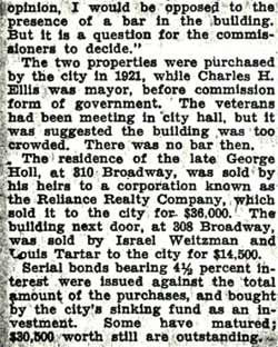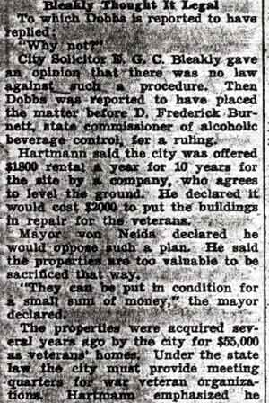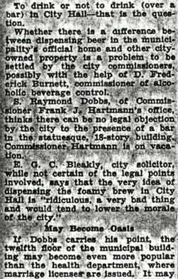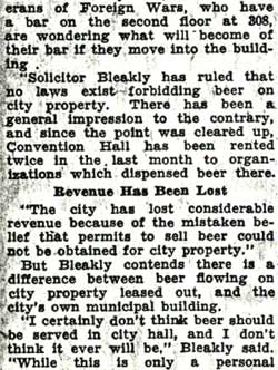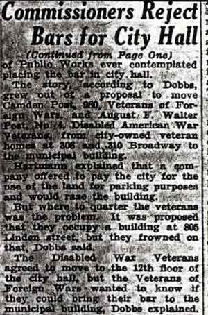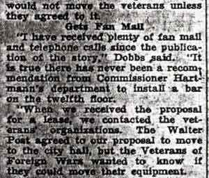OF BAR IN CITY HALL PUT UP TO COMMISSION Veterans Offered Twelfth Floor, Want to Take Liquor Along BLEAKLY OPPOSES MOVE |