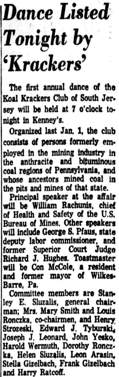 Plans have been completed for the Koal Krackers Club ninth annual clambake to be held at Sunset Beach, Almonesson, on Sunday, July 20, starting at 12 noon. Stanley E. Sluzalis said all ticket returns must be made no later than Friday, July 11. |