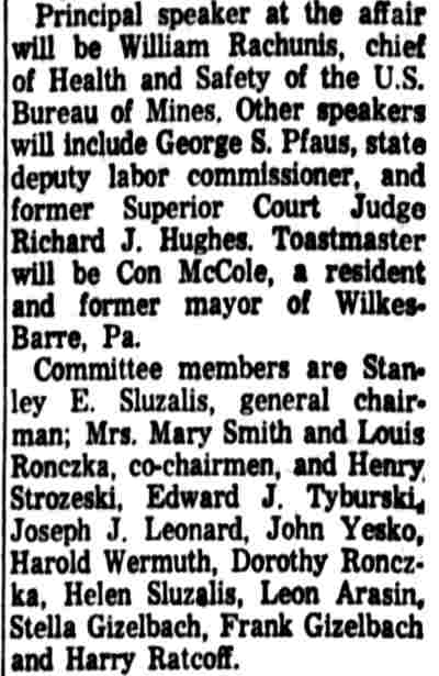 STANLEY E. SLUZALIS was born March 26, 1902, in Mt. Carmel PA to Joseph and Bertha Sluzalis. The family later moved to Nanticoke, Pa. He went to work in the coal mines when only 14. In 1924, at the age of 22, he wed the former Helen Zanowicz with whom he had four children, one son and three daughters. Determined to complete his education, in 1927 he was accepted to Harvard, but was unable to attend. Having a wife and young son, he instead attended Lafayette College during the day while working the graveyard shift in the mines at night. He served as a United Mine Worker of America official for many years and was a strong union supporter at all angles. Prior to moving to NJ he worked for the Pennsylvania Labor Relations Office. After moving to Camden NJ, he was employed by the New Jersey Department of Employment Services in Camden. In 1948 he was given a Civilian Commission by the Commander-In-Chief of the Armed Forces and worked for the US Army Bureau of Mines in Korea and served on a election observation team and was instrumental in organizing the first free election in South Korea. In the late 1950's Mr. Sluzalis was appointed to run a NJ Motor Vehicle Agency which was located at Mt. Ephraim Avenue and Van Hook Sreet in Camden. Residing at 1171 Whitman Avenue, Mr. Sluzalis was the Founder and First President of the Camden Taxpayers Association. He was highly visible at City Council Meetings and many articles he wrote appeared in the Camden Courier-Post, Philadelphia Inquirer, and other newspapers. Active in Democratic Party Politics in the City's 13th Ward, he was also past Recording Secretary of the City's Woodrow Wilson Democratic Club. A member of the Polish American Citizens Club of Camden, Stanley Sluzalis was also President of the Koal Krackers Club, an organization for descendants of coal miners. In 1969 he became a published author, when his book, "The Land of The Black Diamonds" was released. Published in 1969 by Vantage Press of New York NY, "The Land of The Black Diamonds" is the story of the anthracite coal mines in Pennsylvania, between the Delaware & the Susquehanna rivers, where all of the anthracite coal in the United States is produced. Stanley Sluzalis told the story of the anthracite mining industry & the men who earned their living by the sweat of their brow, deep down in the bowels of the earth, the hardships of the miners, their wives & children. At the time of his death February 6, 1974, Stanley Sluzalis he was retired, his last job being that of Mine Safety Inspector for the NJ Bureau of Mines. Mass of the Resurrection was held at St. Joseph's Church, 10th & Mechanic Streets, Camden, and his burial was in St. Mary's Cemetery, Wilkes Barre PA. |