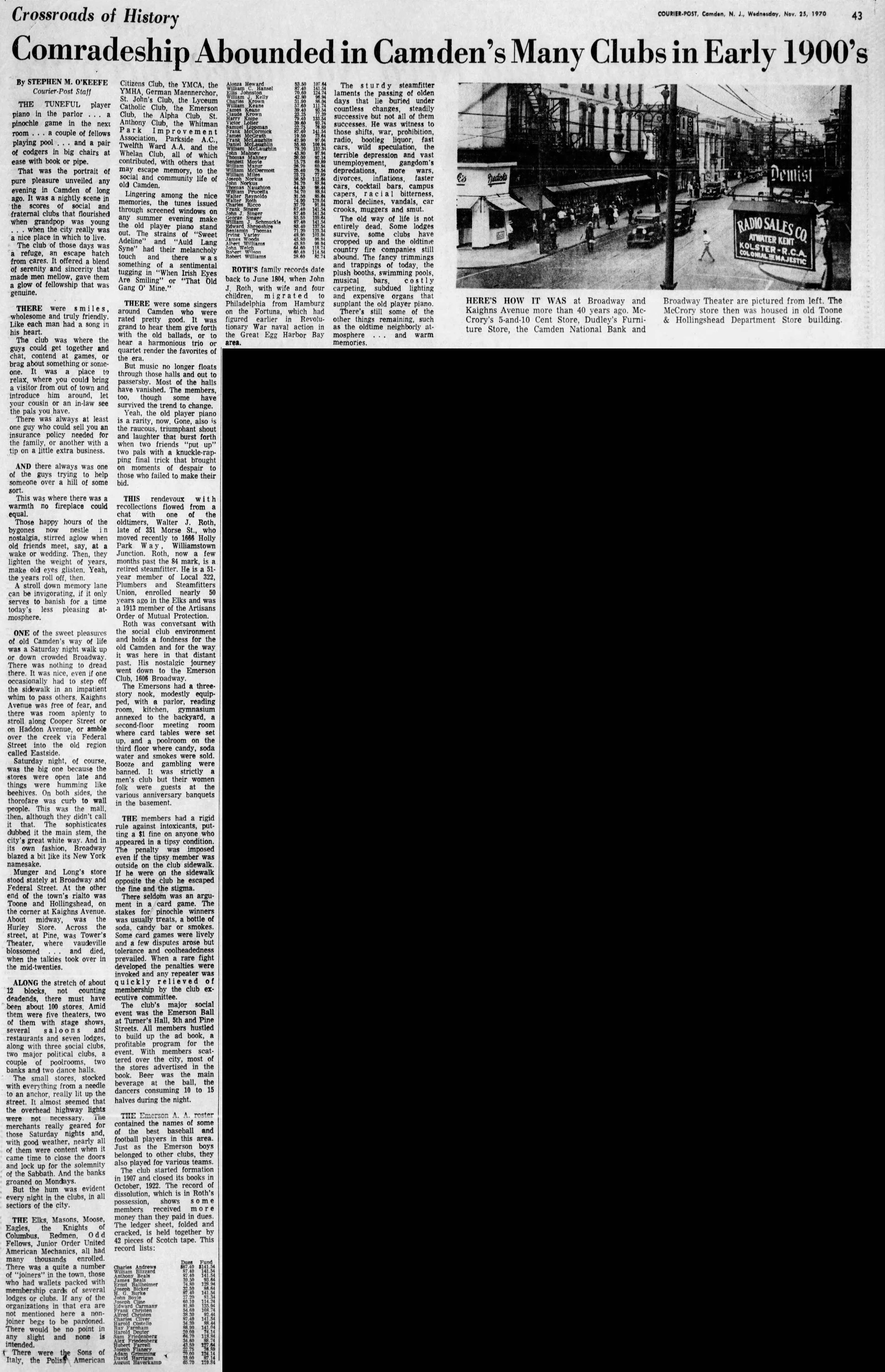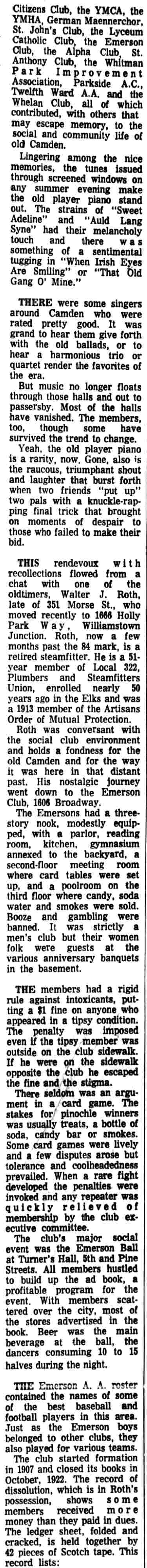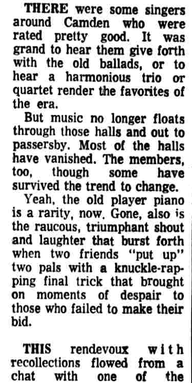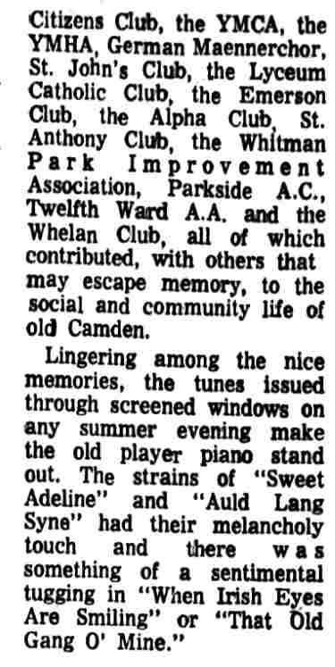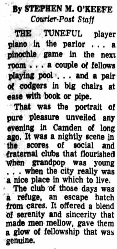 Comradeship Abounded in Camden's Many Clubs in Early 1900's |