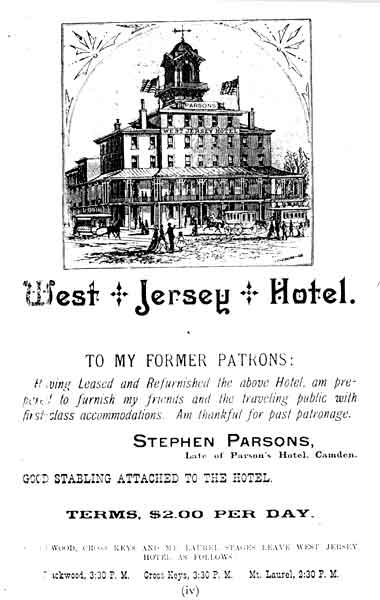 Parsons Advertisement for the West Jersey Hotel 1883-1884 |