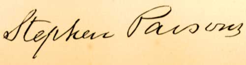 STEPHEN PARSONS is descended from English ancestors., his grandfather, Stephen Parsons, a native of England, being the first member of the family to emigrate to America. The children of the latter are Stephen, William, Joseph, Thomas, Rebecca (Mrs. Reeves Metcalf) and Ellen (Mrs. James Anderson). Thomas, of this number, was born in 1797 in Reading PA, and spent his life principally in Cumberland, Atlantic and Burlington counties in New Jersey, where he was for many years a manufacturer of iron. In politics he was first an old-line Whig, later a Republican, and filled the office of lay judge of Atlantic County and justice of the peace. Mr. Parson married a Miss Champion of Gloucester (now Atlantic) County, whose children are Harriet (Mrs. Elmer Smith, Joseph, and one who died in infancy. All are now (1886) deceased. He married a second time, to Hannah Taylor of Burlington County, to whom were born children, Stephen, Martha (Mrs. Jeremiah Zane, Elizabeth Ann (Mrs. Richard Vannaman), Ellen (Mrs. Godfrey Hancock), Mary (Mrs. Daniel Erdman), John T. (who was lost on the steamer New Jersey plying between Philadelphia and Camden), Thomas (deceased by 1886), Rebecca (Mrs. Eli Braddock), Arabella, James A., Sarah (Mrs. Benjamin T. Bright), and Henry C. (deceased by 1886).
