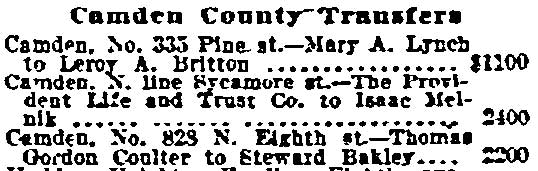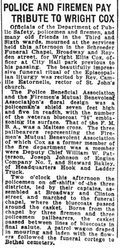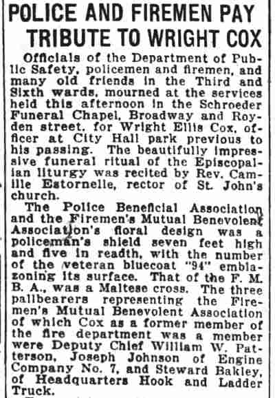Marter Joseph Sparks - George Boone - Roy A. Smith - Edward Simpson - Henry C. Knowles Samuel S. Elfreth - George P. Cox - Walter W. Browning - George B. Wade - John A. Stockton Joseph F. Ernst - John A. Dold - Josiah Sage - Daniel Smith - Arthur Wingate - Joseph T. Johnson Harry Hankins - William Laird - William Elberson - John H. Lennox - Martin Carrigan - Charles Cook Harry Selby - Herman O. Kreher - Daniel P. McConnell - William Howell Tatem Harry C. Anderson - Steward Bakley - Joseph Maxwell William Robinson - Richard Sauer - John Watson - Albert Glanders - Ladder Company 1 Charles Menke - Edward S. Gahan - Engine Company 7 - Engine Company 2 |