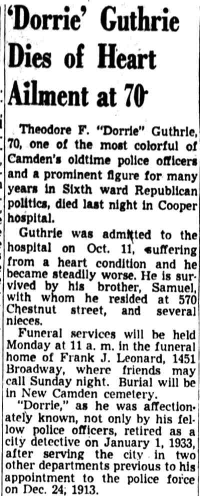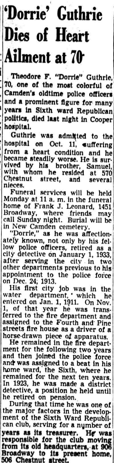 Auletto aka Roxie Allen Louis Bottino Theodore Guthrie - Wilfred Dube Rox Saponare - Joseph Lack George Probert - Charles Areni Carmen Passarella Salvatore Passalacqua Nicholas Dandrea - Nicholas Yenitti A. Baer - Harry Whaland broadway - Central Avenue Clinton Street Kaighn Avenue Mt. Ephraim Avenue South 4th Street - Spruce Street |