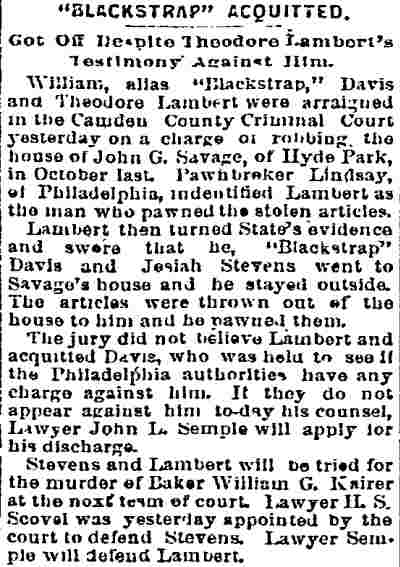 Philadelphia Inquirer William "Blackstrap" Davis Josiah Stevens John L. Semple Joseph G. Savage 1221 Hyde Park Henry S. Scovel Josiah Stevens Theodore Lambert