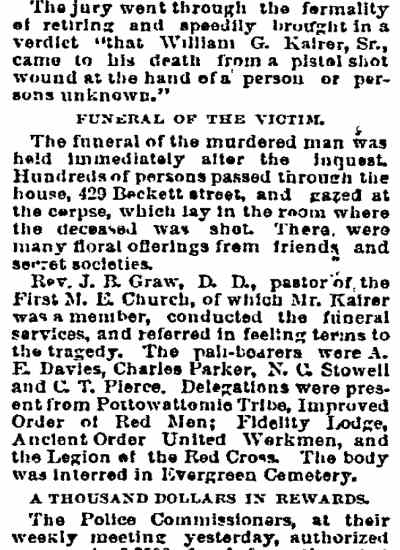 Jr. - William H. Upton - Annie McCuen - Lemuel R. Weldy William H. Davis - Patrick M. Gallagher - John S. Smith Charles Kairer - Frank G. Kairer - Elizabeth Kairer White - Thomas Warren White - First Methodist Episcopal Church Improved Order of Red Men - Ancient Order of United Workmen - Odd Fellows - Legion of the Red Cross Theodore Lambert - Louis Riley - Joseph B. Stevenson |