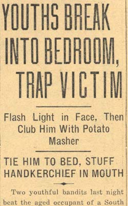 BANDITS BEAT AND BIND AGED MAN, GET $150 | |