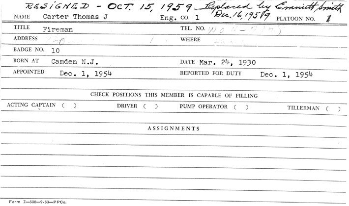J. Carter was appointed to the Camden Fire Department on