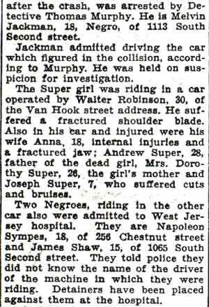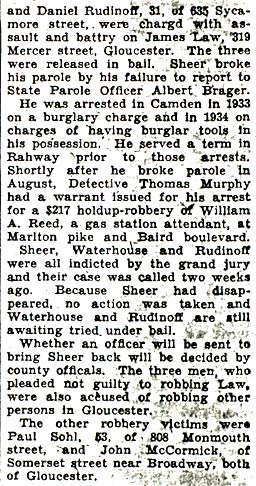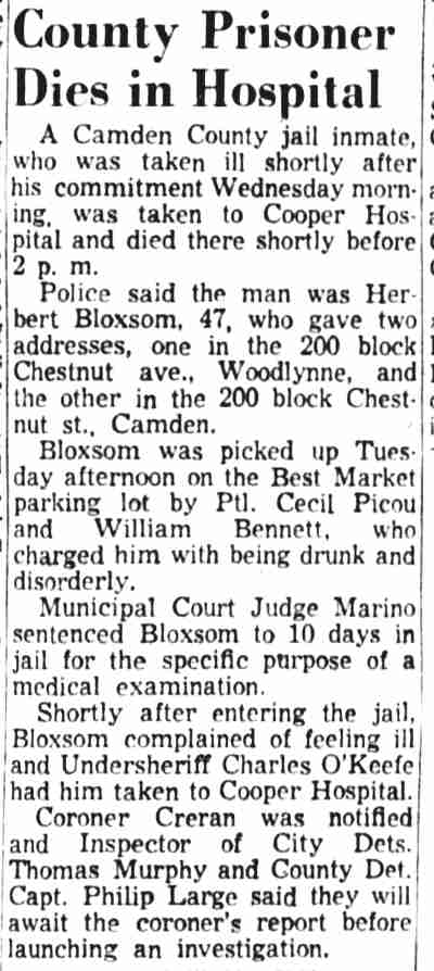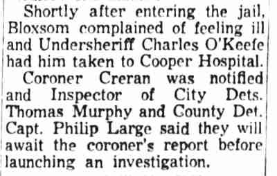 SET TODAY IN GAMBLING DEATH Jury List Prepared for Coroner's Action in Holdup Fatality The coroner's inquest to decide the cause of death to Angelos Magalas, Greek chef, who was shot during a card game holdup at 725 Penn Street on January 11, will be held today at 10 a. m. Coroner Franklin P. Jackson III, of Collingswood, will conduct the inquest and will select his jury of 12 from a list of 15 persons prepared by the office of County Prosecutor Samuel P. Orlando. Detectives already have subpoenaed 20 witnesses for questioning at the inquest, including players who were the victims in the holdup and three Camden physicians who attended Magalas prior to his death. The witnesses will include Samuel and Mabel Ermilios, tenants of the Penn Street house where the holdup occurred; George and Annette Mastros, who room at the house; Samuel Bosco, broadway barber; George Summers, Ross Pantel, Michael D' Andrea. and William Caras, who according to police were participants in the card game. All of the men were held as material witnesses in the shooting when arraigned today before Police Judge Gene R. Mariano. Doctors to Testify Other witnesses will include Dr. Paul Mecray, Dr. A. S. Ross and Dr. Edwin R. Ristine and Miss Sophia MacAfee, a Cooper Hospital nurse. Police who will testify in elude Detectives Thomas Murphy, harry kyler and William Boettcher and Patrolmen Richard Powers, Frank Clements, George Nicktern and Sergeant Jack Deith. The jury will be selected from Guy Clokey, Collingswood; Lawrence Ball, Haddonfield; Howard Friant, Collingswood; Harry Chew, Collingswood; Sig Schoenagle, Camden merchant; Raymond Hanly, real estate broker; Benjamin Brest, Raymond Worrel, John Eby, all of Camden; William H. Lorigan, Merchantville; David B. Robinson, Collingswood; Rev. James Pemberton and John McGowan, of Camden, Earl Jackson, of Collingswood and Morris B. Clark, of Haddonfield. Coroner Jackson refused to give a certificate of death until the chemical test of Magalas' brain was made by Philadelphia experts. The re suit will not be revealed until the inquest. Assistant Prosecutor Isaac Eason and County Physician David S. Rhone gave it as their opinion that Malagas died of natural causes rather than, the bullet wound. Coroner Jackson then ordered an inquest to be held. Police are searching for Frank Luggi, 21, of 322 Penn Street, who they say was one of the holdup bandits and the one who fired the bullet that struck Magalas. The last coroner's inquest held in Camden county was in 1933, in the death of Thomas Timothy Sullivan, and previous to that none had been held here in 25 years. Sullivan was 57 years old and lived at 401 State Street. He was employed as a detective by the Pennsylvania Railroad. He was found shot to death in a shack in the rail road yards on August 28, 1933. At that time, County Physician Edward B. Rogers issued a certificate of death that Sullivan had committed suicide. The decision of the county physician enraged members of Sullivan's family and they demanded an inquest. The inquest was ordered by then Coroner Arthur H. Holl, who presided. All the evidence in the case was presented to the jury of 12 men, and after deliberating for less than an hour, they returned a verdict that Sullivan had been murdered by persons unknown. Under state law, the county physician may order an inquest; with 12 persons on the jury of the coroner's choosing. The jurymen may be taken from the present panel of the petit jury or be picked at ran dom. The Grand Jury does not have to indict on the basis of the inquest. At the inquest Coroner Jackson will be assisted by attaches of the prosecutor's office. Malagas, the father of three children, lived at 1110 Langham Avenue. He was shot when several armed bandits held up a card game and he died several days later. |