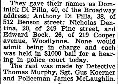 avenue, and James O'Donal, 27, of. Woman Arrested Later Mrs. Rose Koplin, 37, who lives in an apartment over the store, was taken into custody on the same charge and held in $500 bail. Mrs. Koplin's brother, Milton Katz, posted cash bail for her release. Katarina Pologruto, 420 West street, posted bail for O'Donal, who also is known as O'Donnell, and Flynn. Frank Davalos, saloonkeeper, of 441 Benson street, furnished bail for Zeldman. Murphy reported that $700 had been bet on race horses at the establishment up until 3.30 p. m., Saturday, the time of the raid. Among those arrested in the "bingo numbers" racket was Fred Rossi, who fought in the prize ring under the name of "pee wee" Ross. He was arrested Saturday afternoon at his home at 438 Mickle street by koerner and Murphy. O'Donal,