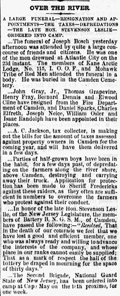 Thomas Grapevine was a member of the Thomas M. K. Lee Post No. 5 of the Grand Army of the Republic (G.A.R) along with a number of other veterans who were also among Camden's leading citizens.