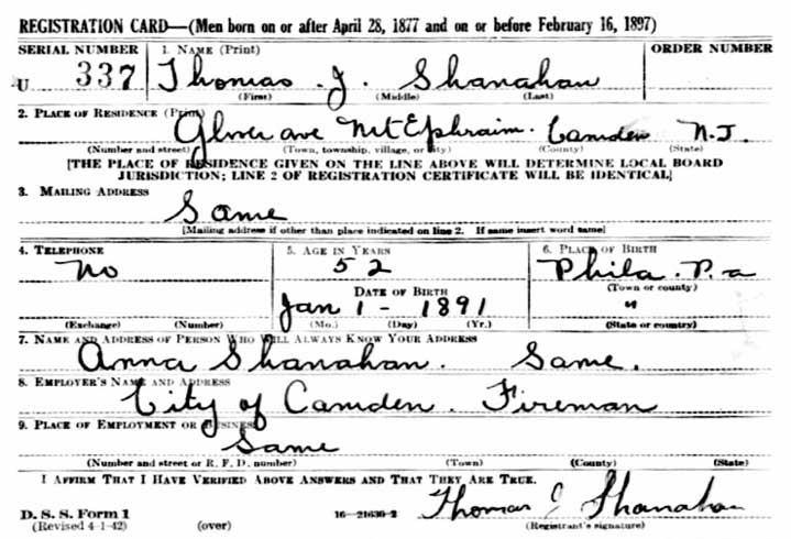 World War II Draft Card |