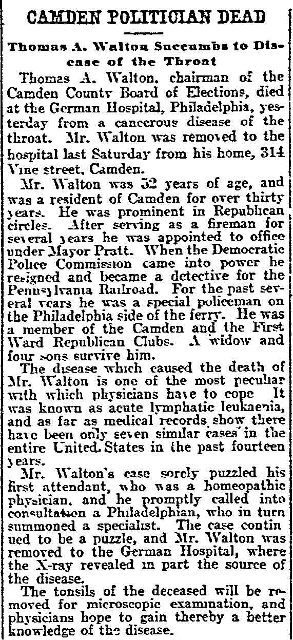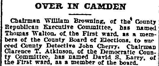 Hires George F. Kappel - John Beard - Francis F. Patterson Jr. - George P. Pechin - Thomas Walton Joseph Burt - Walter Banks - William Lyons - Charles Cook - William Weaver - Robert Finley Samuel P. Jones - Antonio Mecca - John Leighton Westcott - William J. Bradley - Walter Banks Joseph Potter - Joseph Baumeister - Dr. John F. Leavitt - Dr. William Iszard - Joseph Logue |