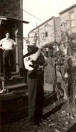 Vincent A. Tydeman is holding the cat, in the backyard of 2116 Howell Street click on image to enlarge |