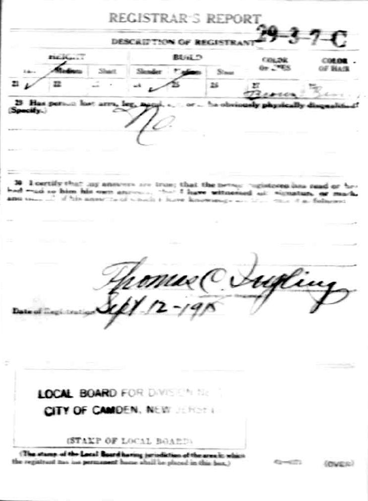 World War I Draft Card |