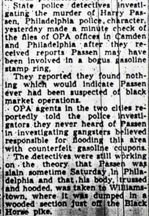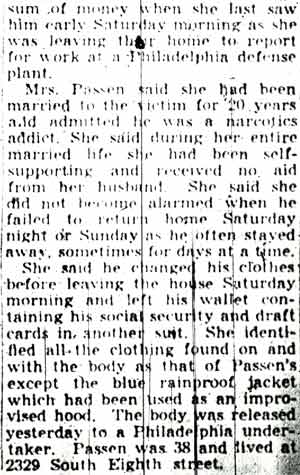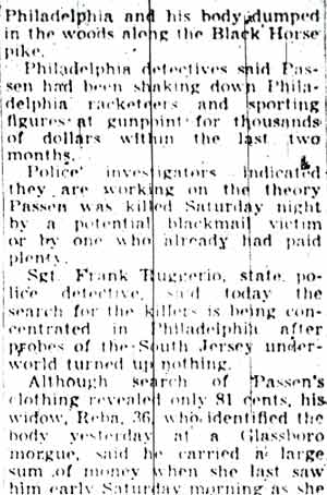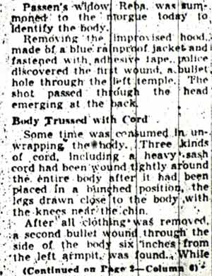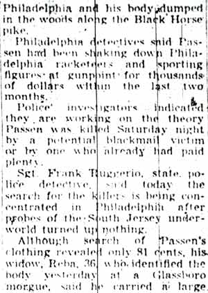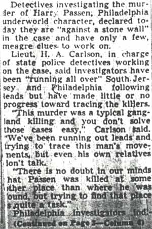ARE BAFFLED IN PASSEN'S MURDER Think Dope-Addict Gangster Was Slain for Attempting Shakedown |