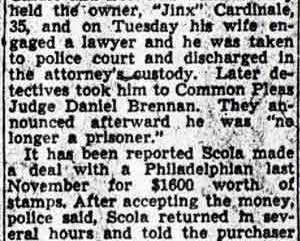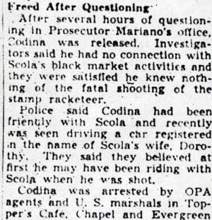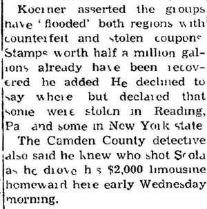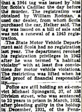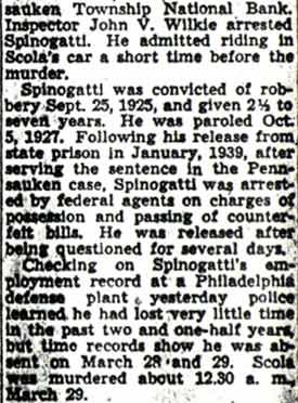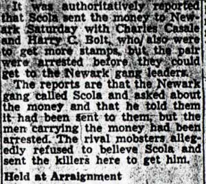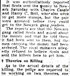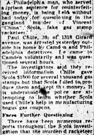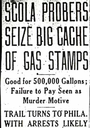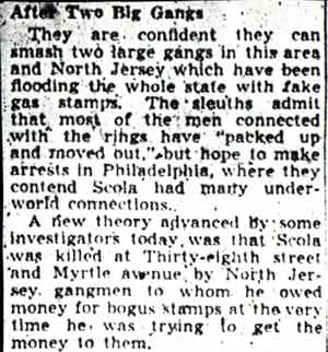 HOLDING EX-CONVICT IN SCOLA KILLING Hear Suspect, Ex-counterfeiter, Gave $1000 to Gas Stamp Racketeer THINK GANG VICTIM DIDN'T MAKE GOOD |