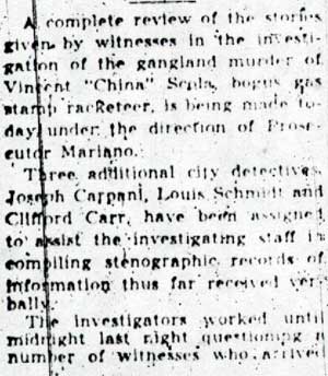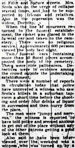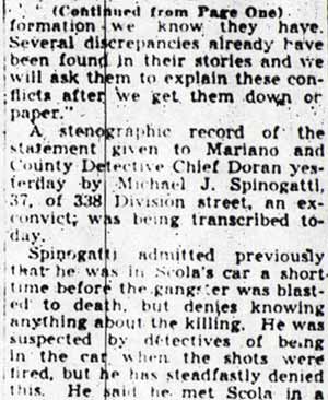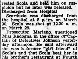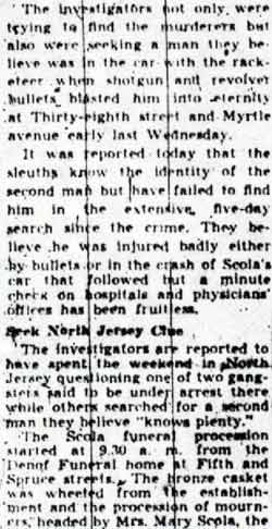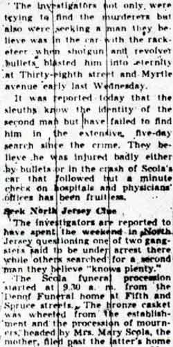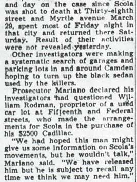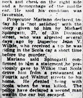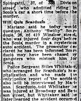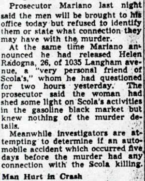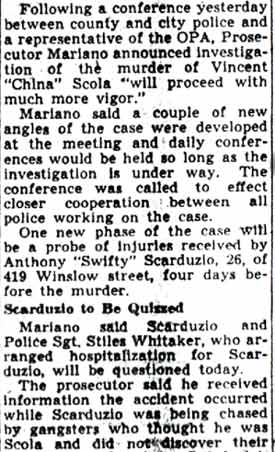 Confers with Police On Scola Murder Clues Driver Reported Hurt Fleeing Gangsters to Be Questioned MARIANO PLEDGES NEW VIGOR IN QUIZ |