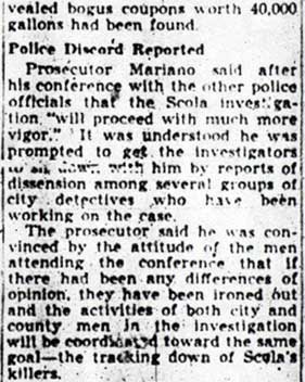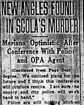 NEW ANGLES TURNED UP IN SCOLA KILLING Mariano Optimistic After Conference With Police and OPA Agent REPORTED DISCORD BELIEVED IRONED OUT |