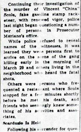 REVIEW ALL STORIES IN SCOLA MURDER Stenographers Take Down Every Line; Sure Some Have Evaded, Lied SCARDUZIO IS HELD WITH BAIL DENIED |
