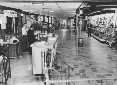 In April 1962, the former stable was re-acquired by Bennett Lumber. The firm promptly remodeled the stable’s interior into a complete sales center for lumber and home-improvement products. The new sales center also contained a small museum commemorating the lumber trade through the exhibition of antique tools. By 1966, Harold Roberts had purchases all outstanding corporate stock which placed the firm back into Bennett family ownership. Roberts, a native of Vermont, married one of Volney G. Bennett’s great-granddaughters, Jerry Bennett, in 1946. He began working for the company as a yardman, eventually becoming a salesman and bookkeeper in 1950. Harold and Jerry Roberts’ sons, Stephen and Brian, both joined the firm in the 1970's and now represent the fifth generation of the Bennett family operating the company. The firm updated the stable and 1924 office exterior features and joined the two structures to form a unified commercial storefront. All of this remodeling was accomplished in a Colonial Revival styling. Despite Bennett Lumber’s last attempts to change its inner-city image to meet the new home-improvement market, the declining image of the City of Camden was too much to overcome. By the mid-1970's, the City and the Camden Housing Authority declared the waterfront district and neighboring area "blighted". The Housing Authority acquired the Volney G. Bennett Lumber Company Camden property in 1979 as part of a redevelopment plan for the improvement of the municipal port. To commemorate the historical significance of the Volney G. Bennett Lumber Company and its physical heritage, Harold Roberts insisted that the Camden Housing Authority amend its deed to memorialize this legacy. The amendment stated that the old sales office and brick stable would be "maintained by the Authority, its successors and assignees, in good and occupiable condition, pursuant to the National Historic Preservation Act of 1966". Roberts also required that a statement be placed in the deed legally reserving space in the old stable for the construction of a lumbering museum. This museum would feature displays of photographs and old tools to celebrate Camden’s role in regional lumbering. It would also illustrate the share that the Volney G. Bennett Lumber Company and its officers played in the region’s heritage.
