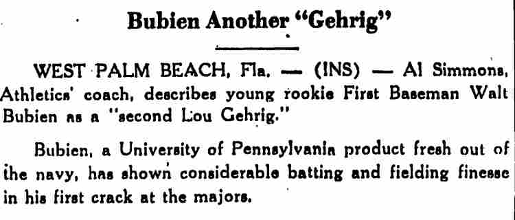 1946 | -- | 2 Teams | 2 Lgs | D-A | PHA | 57 | 141 | 29 | 5 | 2 | 0 | .206 | .270 | 38 | |||||||||