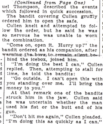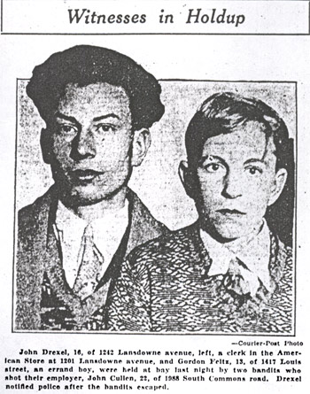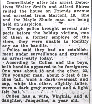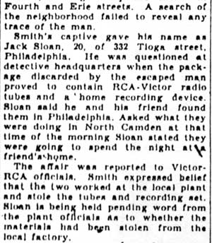 REFUSES TO LET COPS BARE HOLDUP EVIDENCE After refusing defense counsel's request that the city police bare their evidence, Police Judge Pancoast yesterday held two suspects without bail in the recent $11,790 Radio Condenser Company holdup and two other youths as material witnesses. Frank M. Lario, attorney for the quartet, appeared in police court yesterday with William McDonald, court stenographer, and declared he wanted the police through witnesses on the stand, to reveal what evidence they have in the robbery. But when Judge Pancoast asked Lario if he was willing to have the prisoners submit to cross examination by the court the attorney refused. Judge Pancoast thereupon declared that the formal complaints against the defendants were sufficient to establish a prima facie case, that no hearing was necessary and that the police therefore were not obliged to disclose any testimony. Leroy Jenkins, 23, and, Joseph Putek, 23, who gave addresses at 1113 Mechanic Street and 1212 Lansdowne Avenue, respectively, were committed to the county jail without bail on charges of holdup and robbery. They pleaded not guilty. Those held as material witnesses were Leon Grenkwicz, 18, of 1469 Louis Street, and stanley gieda, 19, of 1273 Whitman Avenue. Lario pointed out they were in jail when the holdup occurred but, Judge Pancoast said he would hold them for the prosecutor's office which would probably fix bail for them. City Detective Benjamin Simon, who signed the complaints, stated prior to the hearing that he has obtained information from North Jersey which is vital to his investigation of the robbery. But he would not reveal its nature. None of the money stolen by the bandits, who herded 11 persons in a vault after forcing one of them to open the safe containing the payroll, has been recovered by the police. |