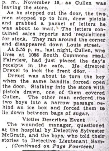 LIGHT IN BASEMENT STARTS BURGLAR SCARE Abe Block had a burglar scare at 1 :30 a. m. Saturday in his tailor shop at 527 North Eighth Street. Block was passing the shop on his way home when he saw a light in the basement. He thought thieves were ransacking the place. He telephoned police and Detectives Walter Smith, edwin mills and John Trout sped to the shop. Letting themselves in cautiously, they made their way to the cellar, and found that occupants of the second floor of the house were fixing the heater fire for the night. |
