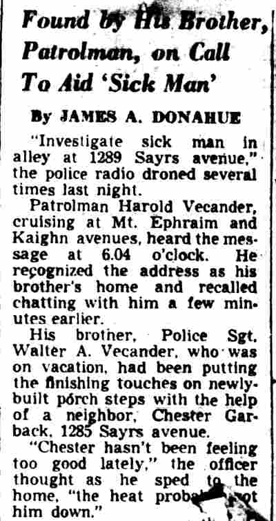 Middleton Felled by Gas In House Here With gas flowing from a pipe detached from a gas range, former City Commissioner Melbourne F. Middleton, Jr., was found unconscious in the kitchen of his former home at 538 Cooper street early Saturday night. Middleton was reported last night to still be in a critical condition at West Jersey Hospital, where he was taken. The Camden Fire Department First Aid Squad worked over him for an hour at the house in a vain effort to revive him. Middleton, a former president of the Philadelphia Stock Exchange, and one time city councilman, was found by a son, C. Barry Middleton, and a friend, John Williams Rossell, who lives with the Middletons on Laurel road, Moorestown. Middleton was clad in overalls and two large pipe wrenches were lying on the kitchen floor near him. Young Middleton said his father told his family he intended to take up some linoleum in the kitchen of his former home. Middleton first went to his office Saturday and then to St. Paul's Episcopal Church to a service. From there he was traced to his former home, which is owned by him. When Middleton failed to return home for dinner at the usual time Saturday his son and Rossell decided to search for him. When young Middleton discovered his father's plight he notified police. Patrolmen Frank Cavallo, Henry Lutz, walter vecander and George G etley responded in radio cars and gave first aid until the fire department squad arrived. The firemen worked on the former commissioner one hour with an inhalator before ordering his removal to the hospital, where they continued to work on Middleton for another hour but were unable to revive him. Hospital physicians continued working on him without success. They said his condition was critical. Gas Man Called At 4 p. m. Saturday the family living next to Middlemen's home telephoned Public Service that gas was coming from the house. Public Service sent a man to investi-gate but he was unable to get into the house. Young Middleton and Rossell said they reached the house at 6.17 p. m. While he was a member of the first city commission Middleton was director of finance but never missed responding to all alarms of fire. He was a member of the fire committee while serving in City Council as a member from the Second ward. In that capacity he also answered all alarms. Members of the Firemen's First Aid Squad responding to the call were Deputy Chief William R. Harring, Hosemen Christopher Moll, william spencer, Harry Haines, Russell Anderson, william harry deitz and Nelson Andrews. City Detectives benjamin simon, Joseph Mardino and William Marter are investigating the cause. |