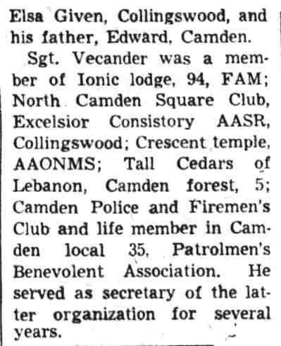 Francis Vecander Edward Vecander - Ionic Lodge No. 94, F. & A.M. - Tall Cedars of Lebanon Camden Forest No. 5 North Camden Square Club |