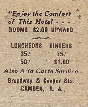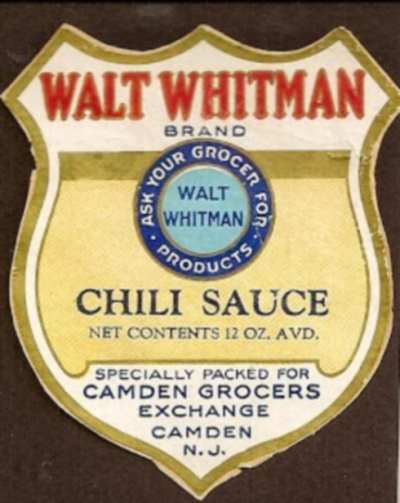 WALT WHITMAN, Camden's "Good Grey Poet', the life of whom a subject that has been written on at length by many people far wiser than I. Rather than rehash much that is to be read elsewhere, I will present things of interest concerning Whitman, his life and times in and around Camden, and comments by those who knew him and other contemporaries. One aspect of Whitman that is far off the literary track is the use of his name and image for commercial purposes after his death. The Hotel Walt Whitman, the Walt Whitman Stores grocery chain and the assorted canned and packaged food items distributed under the "Walt Whitman" and "Poet" brand by Camden Grocer Exchange are probably the best rememembered examples. Not to be forgotten is the Walt Whitman Bridge over the Delaware River. One has to wonder how many of those who cross the bridge daily know whi Whitman was, and of that number, how many have read any of his poetry. |