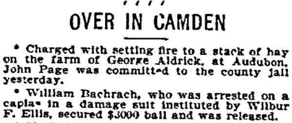 WILBUR BODINE ELLIS was the son of prominent Camden grocer Charles H. Ellis and his wife Hannah. His oldest brother Charles H. Ellis Jr., would serve as the Mayor of Camden for 17 years, from 1905 to 1922, and another brother, Walter P. Ellis, worked as superintendent at Camden's Post Office for many years. The family lived at 510 Berkley Street at the time of the 1880 Census. He became an assessor for the city of Camden in 1905, was made President of the Board of Assessors in 1913, ands remained in that capacity until May of 1923, when the commission form of government was adopted in Camden. He then went into the real estate business, but later returned to city government, sitting on the Board of Commissioners of Assessment of Taxation. When the census was taken in 1920, Wilbur and Gertrude Ellis were living at 1434 ormond avenue in camden's Parkside section. After serving on Camden's Board of Commissioners of Assessment of Taxation, he retired on a disability pension around January 1, 1938. He was replaced on the board by S. Raymond Dobbs, on the recommendation of Mayor George Brunner. Wilbur B. Ellis was still living in Parkside as late as 1936, then residing at 1448 Bradley Avenue. |