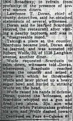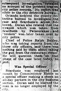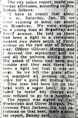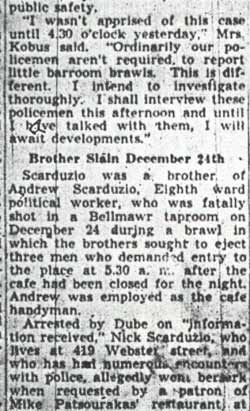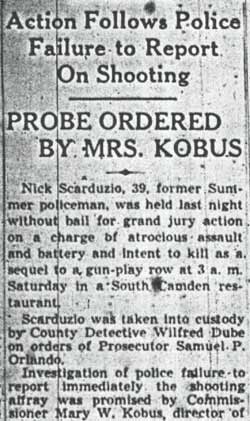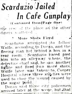 A difficult case that Wilfred Dube investigated in 1953 was that of the tragic suicide of James S. Wilkie, son of a veteran Camden police officer, John V. Wilkie. For several days after the shooting, Sgt. Wilkie claimed that he had shot his son, in order that he receive a Catholic funeral. He retracted his confession after it became apparent that he could not deceive the city and county investigators, and was released after the grand jury refused to return an indictment. This tragic case saw the involvement of many of Camden's law enforcement and legal community, including Benjamin Asbell, Mitchell H. Cohen, Thomas Murphy, James J. Mulligan, J. James Hainsworth, Samuel P. Orlando, john healey, and Joseph Bennie, among others. |