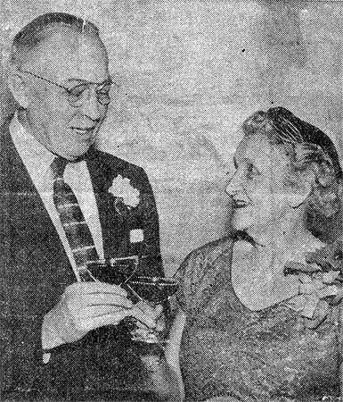 AN ANNIVERSARY TOAST is offered by Mr. and Mrs. William B. Colsey Sr. at a party in their honor Tuesday night at Kenney’s. The Margate residents, formerly of Camden and Palmyra, celebrated their 50th wedding anniversary. One of Mr. Colsey's uncles was the late Arthur Colsey, Camden police chief for many years. His family operated the old Colsey Department Store at 9th and Market Streets many years ago. The couple has two children, four grandchildren and one great-grandchild. |