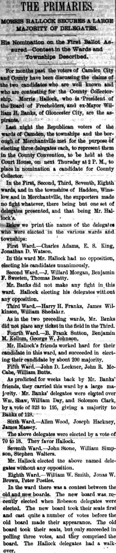 Daily Courier October 17, 1882 Morris Hallock - William H. Banks |