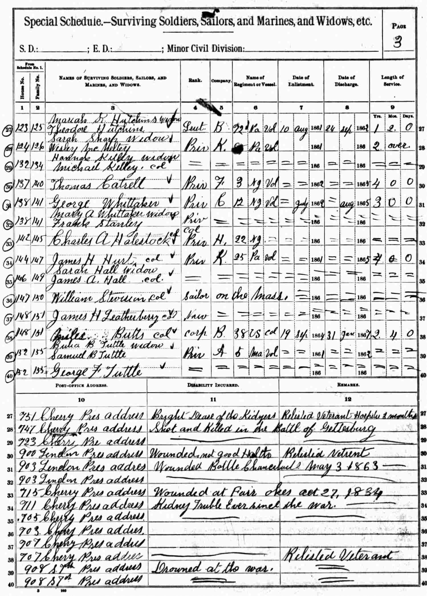 Dodson - James Evans - George Hanson William M. Butts - John Foster - Marwood Derrickson - Alfred Reed C. Henry Peters - Daniel F. Hurley - Ida Fisher - Laura LeCount |