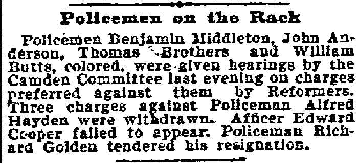 Here's Camden's Finest, With Whiskers, in 1898 |