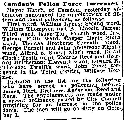 Tatem Casper Hart - Thomas Brothers - John Anderson - George Purnell - Alfred S. Snow David Clark - Thomas Reed - Howard McPherson - Edward R. Thomas- John Zane - William C. Horner |