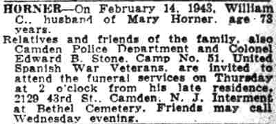 Camden Courier-Post February 16, 1943 Lemuel D. Horner Jr.