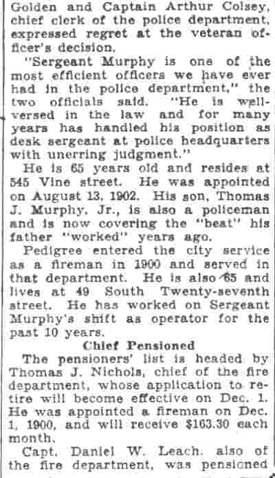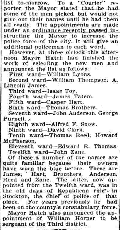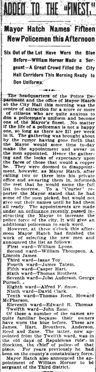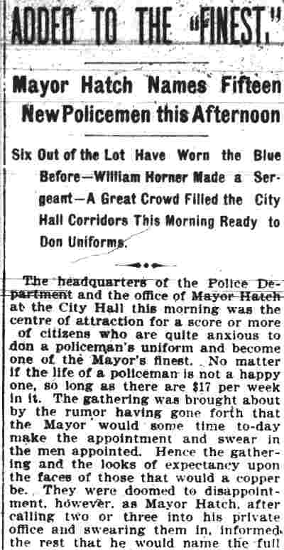 Roy. R. Stewart David S. Rhone - John W. Golden - Arthur Colsey - Thomas P. Murphy - Thomas J. Nicholas Daniel W. Leach - Harry Hankins - James McDermott - Joseph T. Johnson - Harry Bakley - Irving Varley James M. Ellis - William Bryant - Samuel Hibbert - William C. Horner |