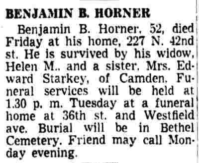 Camden Courier-Post November 15, 1952 Benjamin B. Horner |