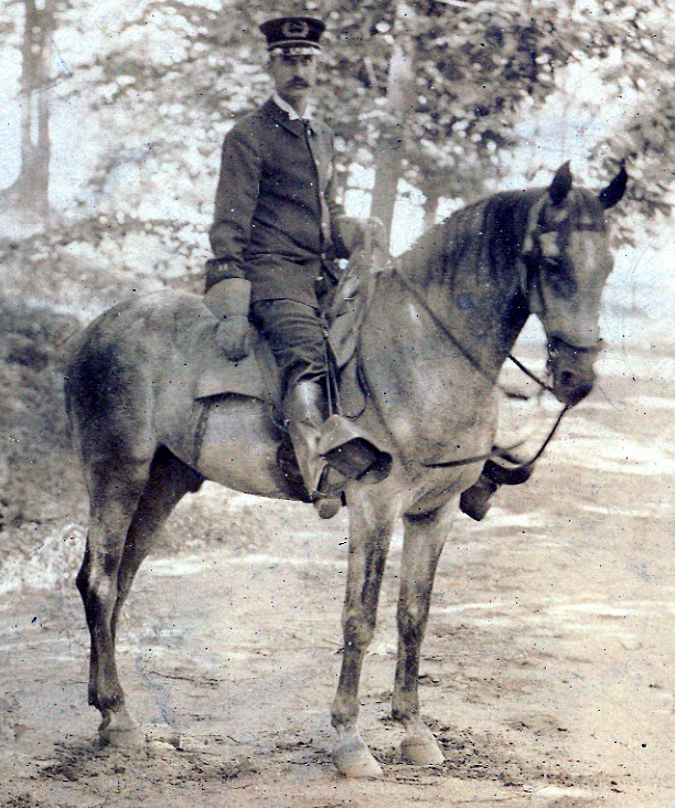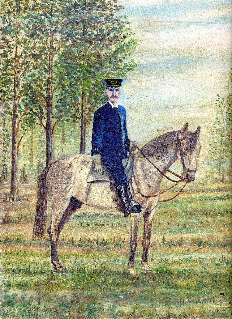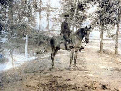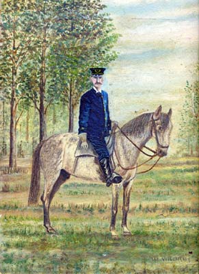 Painting by M.E. Williams of Captain William E. Albert on patrol in Dudley Grange early 1900s Derived from photograph above Click on Image to Enlarge |