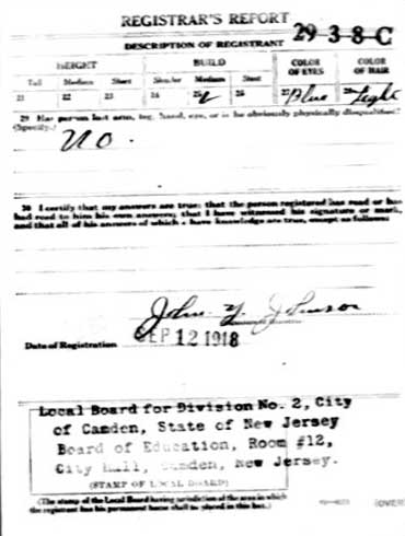 World War I Draft Card |