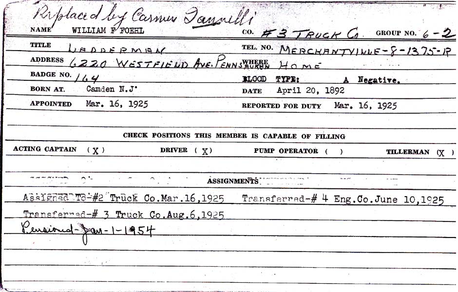 Camden Fire Department Personnel Record |