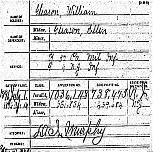 William Gleason enlisted as a private in the 4th New Jersey Infantry Militia Regiment (Also known as the Twentieth New Jersey Infantry) on April 14,1861, and was subsequently assigned to Company G. The Fourth Regiment Militia was commanded by Colonel Matthew Miller, Jr.; his officers were Lieutenant Colonel Simpson R. Stroud and Major Robert C. Johnson. This regiment was mustered into the U. S. service at Trenton, April 27, 1861, to serve for three months, and left the state for Washington, D. C., on May 3, with 37 commissioned officers and 743 non-commissioned officers and privates, a total of 777. On the evening of May 5 it reached the capital, and on the 9th it was ordered to go into camp at Meridian hill, where, within a few days the entire brigade was encamped, and where, on the 12th, it was honored by a visit from the president, who warmly complimented the appearance of the troops. On the evening of May 23 it joined the 2nd and 3d regiments and about midnight took up the line of march in silence for the bridge that spanned the Potomac. This bridge was crossed at 2 o'clock on the morning of the 24th, the 2nd was posted at Roach's spring, and the 3d and 4th about half a mile beyond on the Alexandria road. On July 16, a guard was detailed from the 4th for a section of the Orange & Alexandria railroad, which it was important to hold; one company from the regiment guarded the Long bridge; still another was on duty at Arlington mills; and the remainder of the regiment, together with the 2nd, was ordered to proceed to Alexandria. On July 24, the term of service having expired, the 4th returned to New Jersey and was mustered out at Trenton, July 31, 1861. The total strength of the regiment was 783, and it lost by discharge 6, by promotion 2, by death 2 and by desertion 7, mustered out, 766 . Private Gleason was among those mustered out on July 31, 1861 at Trenton. Several men who served with Company G became members of the Camden Fire Department after it was founded in 1869, including Benjamin Cavanaugh, J. Kelly Brown, Henry F. Surault, edward mead, William Cox, William W. Mines, and James M. Lane. Other Fourth Infantry men who served included Theodore A. Zimmerman, Charles G. Zimmerman, William C. Lee, George B. Anderson, Jesse Chew, William H.H. Clark, Cornelius M. Brown, John J. Brown, Benjamin Connelly, and G. Rudolph Tenner. Several other Fourth Infantry veterans played significant roles in Camden in the ensuing years. In