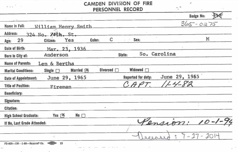 Sorenson. a hoseman for Co. No.8, listed in serious condition at William Smith, also a hoseman for Co. No. 8. listed in satisfactory condition at Our Lady of Lourdes Hospital with head and facial cuts. |