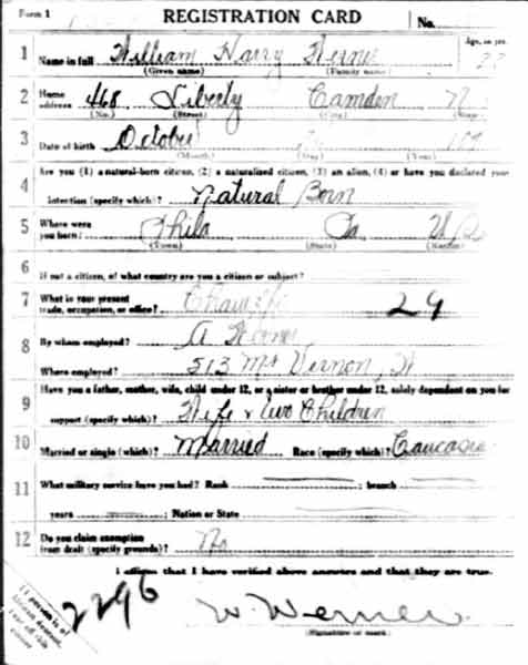 William Harry Werner - World War I Draft Card |