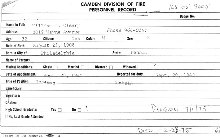 Eskridge Joseph Hooven - Julius Kaunacki - William E. Kelly - William H. Neale - Francis J. Nelson John E. Opfer - Cecil H. Picou - Earl Quinton - Edward W. Tatem - Harry Tracy - Harold Vecander John H. Watkins - Edward Watson - donald r. watson - George T. Weber - Stanley Zuckowicz Philip Farrow - Anthony Bretschneider - John Gryckiewicz - Thomas Winstanley William Palese - Anthony Dzinski - Joseph Guarino - martin nelson - William Cleary - Otto Kaiser |